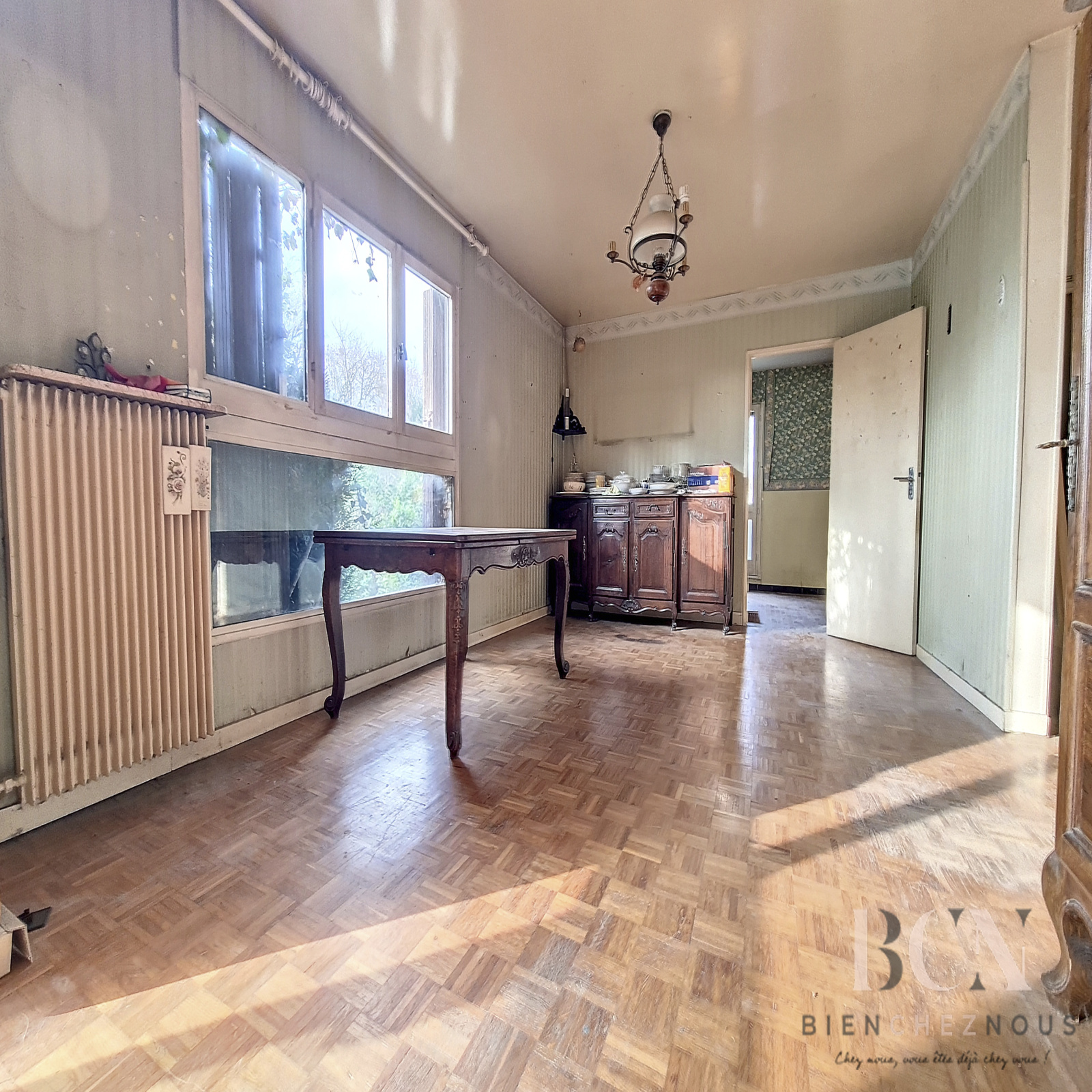 Située dans la commune de Bouffémont, proche commodités à pieds (commerces, écoles, bibliothèque, gare Bouffemont-Moisselles), maison mitoyenne d'un côté aux Maréchaux de 142 m2 loi carrez de surface habitable. Maison sur 3 niveaux : au rez de jardin, une belle pièce de 23m2 vous attend avec acces direct jardin, chaufferie, rangement sous escalier. Au rez de chaussee, la pièce de vie avec salon-sejour de 29m2, cuisine dinatoire de 18m2, salle d'eau et wc. A l'étage, vous trouverez 4 chambres dont une de 14m2, salle de bains, avec wc, placard de rangement. Le bien bénéficie d'un jardin de 201m2 clos et un box fermé. Bien à fort potentiel, prévoir une enveloppe travaux pour remetttre à votre goût. Nombre de lots: 2, montant des charges annuelles de copropriété: 950€. DPE classe confort F/337 ET classe climat F/73, montant des dépenses energétiques entre 2930 € et 4020 €. Le prix du bien est de 280 000€ honoraires charge acquéreur inclus, 10 000€ de frais d'agence. Numéro de dossier 136, pour toutes visites, merci de contacter Mélanie (EI) immatriculée au RSAC de Pontoise 811150069 au 07.82.63.52.95 ou a l'agence au 01.83.93.60.50.