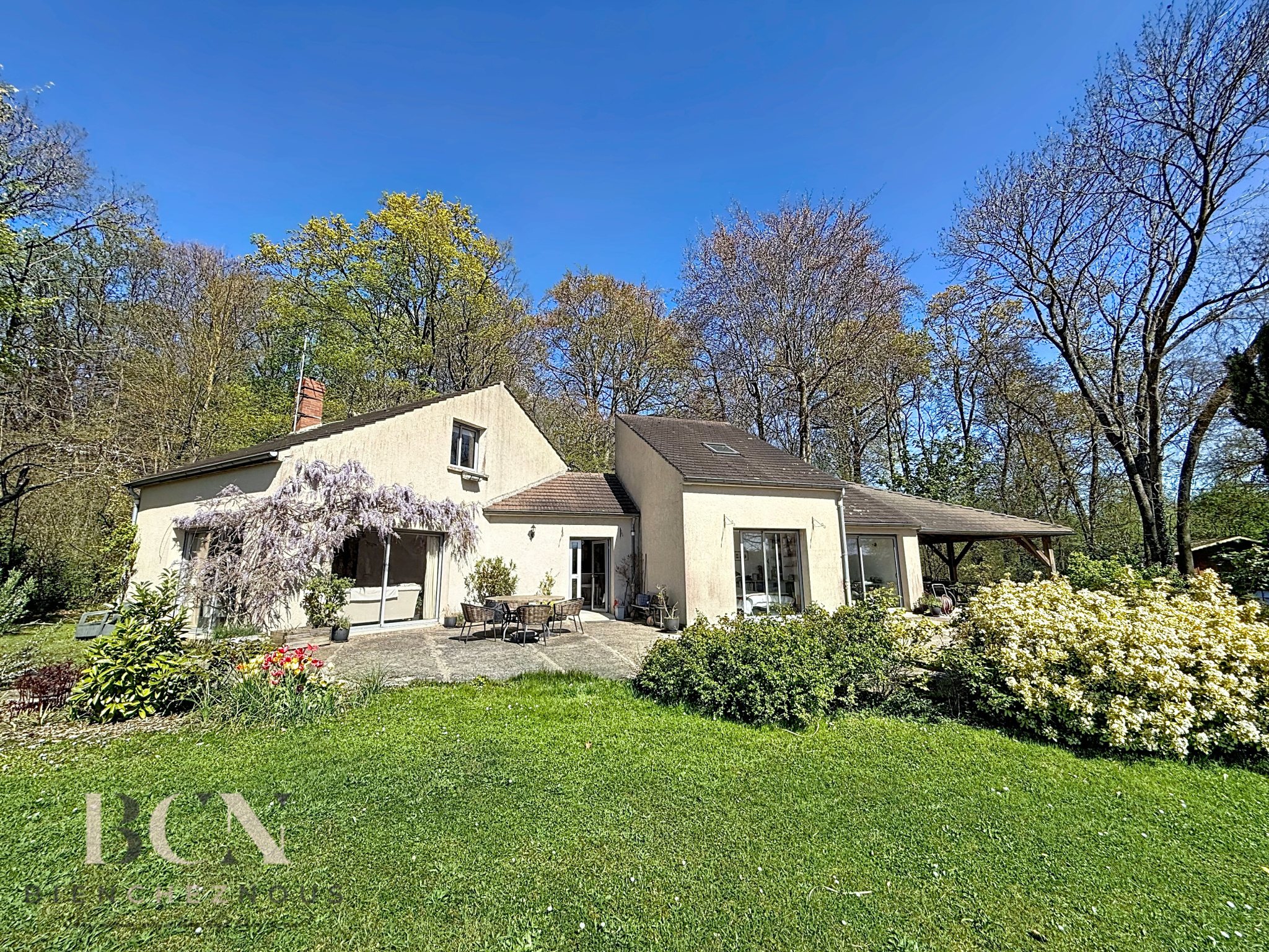 Vous recherchez du calme et beaucoup d’espaces verts, venez découvrir cette maison individuelle de 134m2, nichée sur les hauteurs de Ronquerolles dans un parc de plus de 6 000m2. A votre arrivée la longue allée vous permet d'accéder à la maison qui se compose : d’une entrée, un triple séjour baigné de lumière avec son poêle à granules, une cuisine aménagée et équipée, une chambre, une salle d’eau et un WC. Une buanderie et un atelier de plus de 17m2 ( pouvant devenir une chambre ), un escalier vous mènera à une pièce palière, une chambre avec sa salle d’eau et WC. A l’étage une chambre parentale avec rangements et un WC indépendant. A l’extérieur une très belle étendue de jardin avec une orientation exceptionnelle laissera libre cours à votre imagination pour l’aménagement des espaces pour les petits et les grands. Un grand carport et un chalet complètent l’ensemble ainsi qu’un espace boisé.