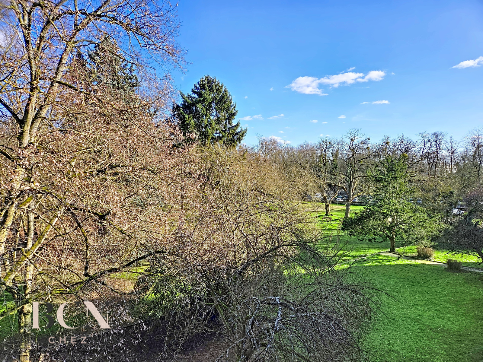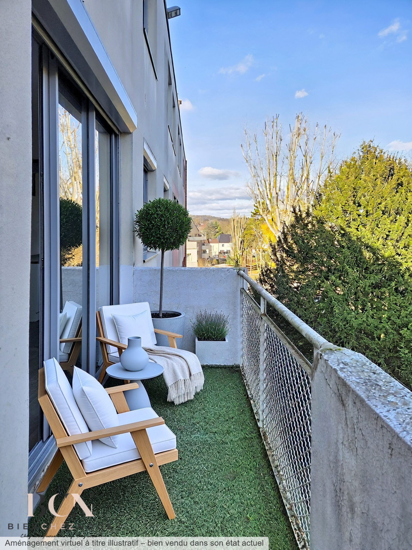 Un balcon donnant sur un environnement arboré